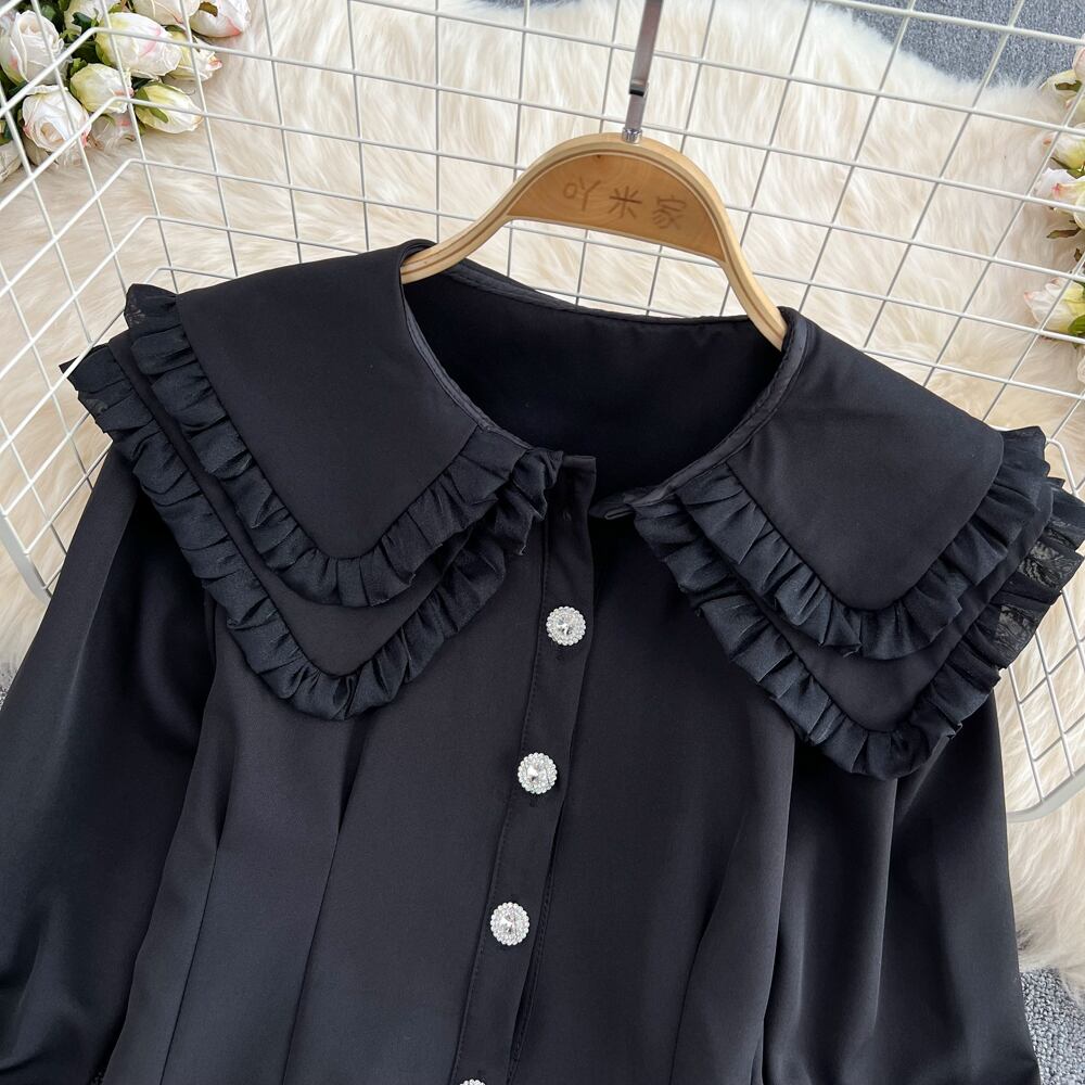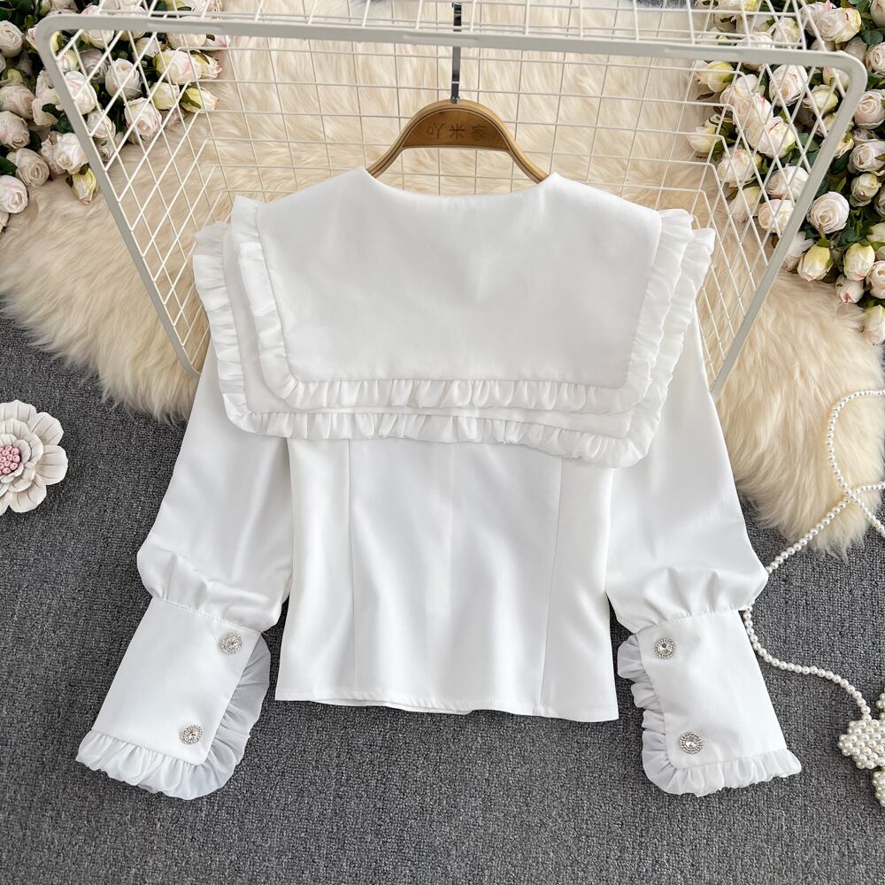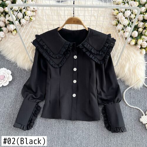 のみくまスウィートダブルピーターパンカラーブラウストップスレディースシックフリルパフスリーブシャツ2022秋フェミニマ 大人ガーリー キュート カジュアル オータム 秋物 kor18894326761