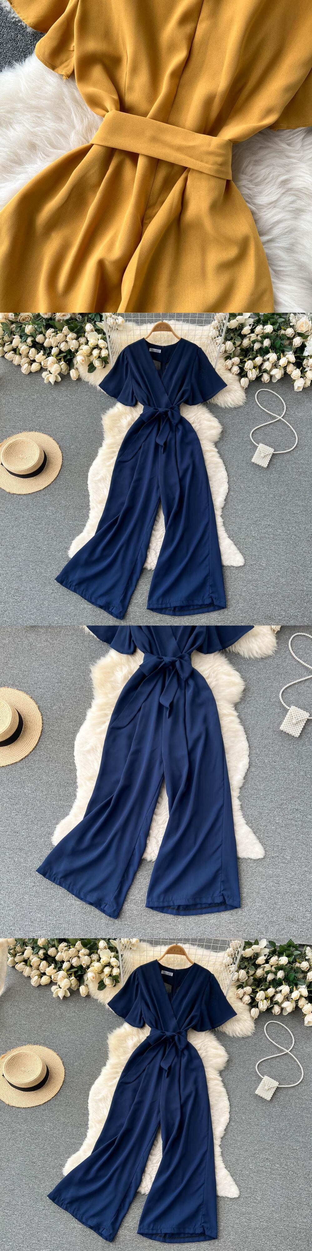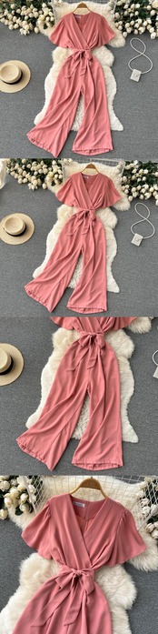 ノミクマ2022ウエストドローストリングワイドレッグコンビネゾンジャンプスーツレディースパンタロンベラノ ワイドパンツ kor76853909747