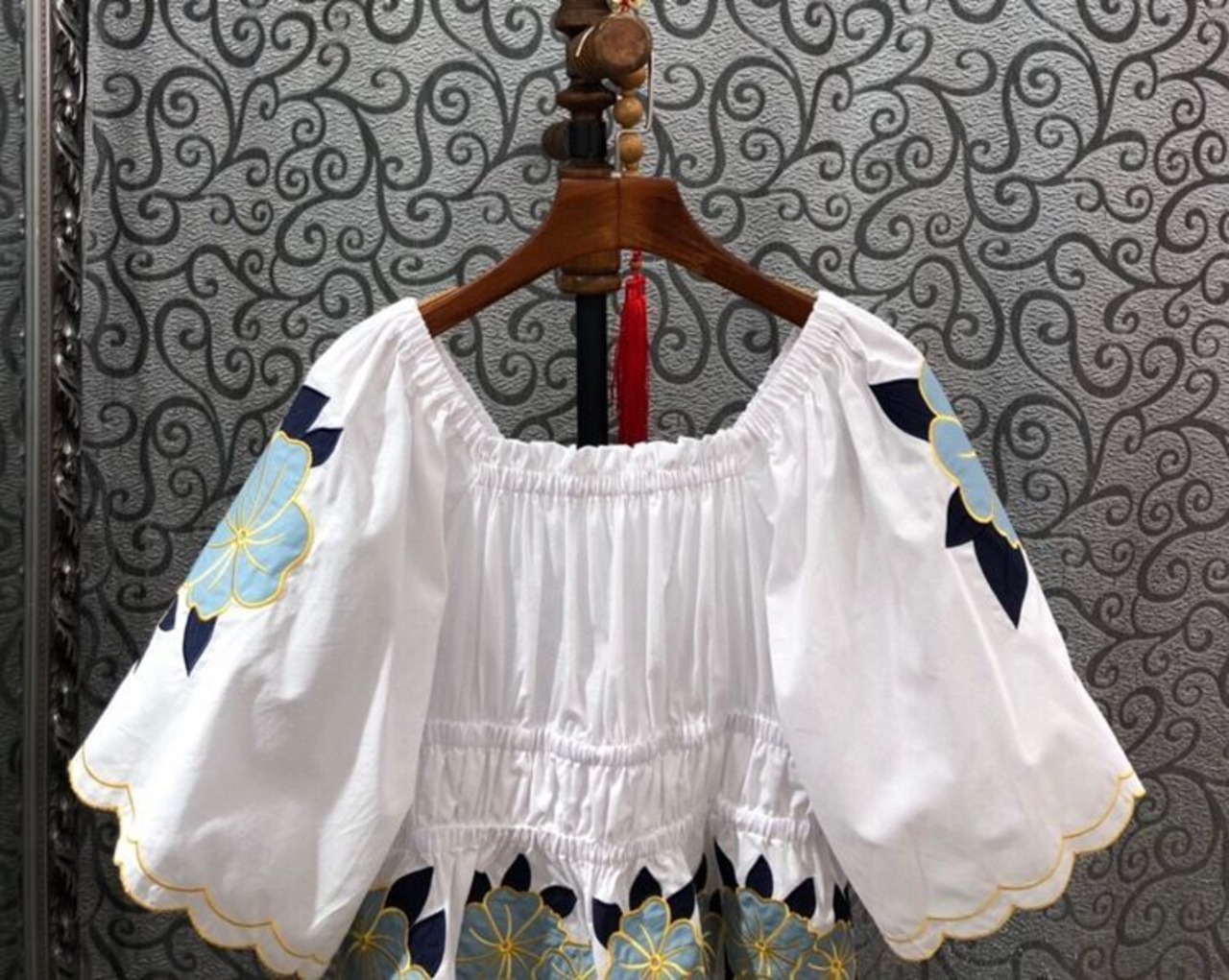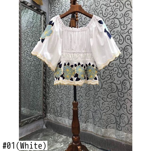 のみくまシックな刺繡ブラウストップス因果半袖スクエアカラーウーマンシャツ2022SweetDe Moda ハーフスリーブ 刺繍 大人ガーリー スウィート キュート カジュアル スクウェア kor41710425877