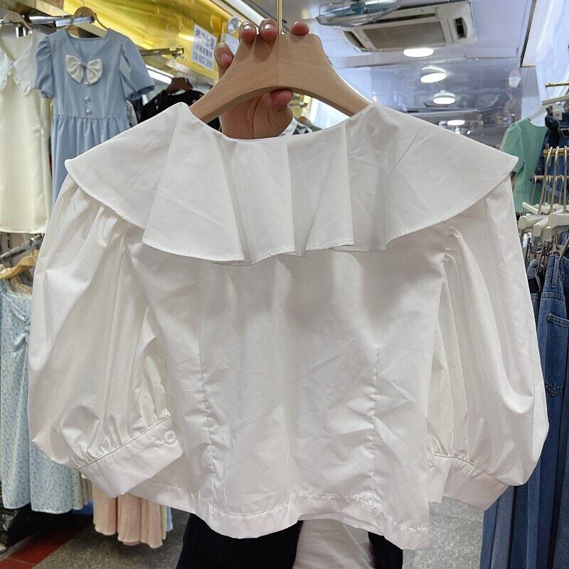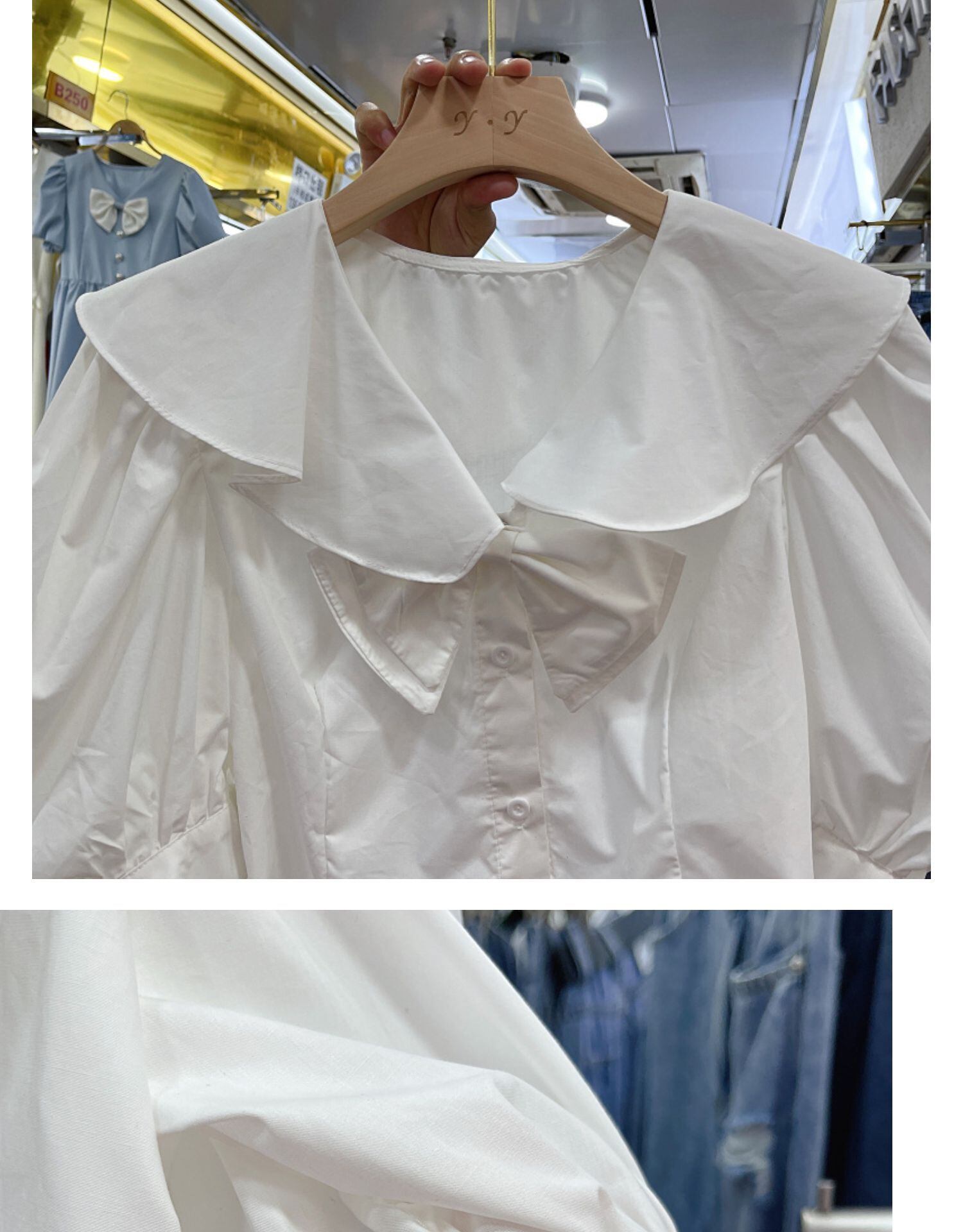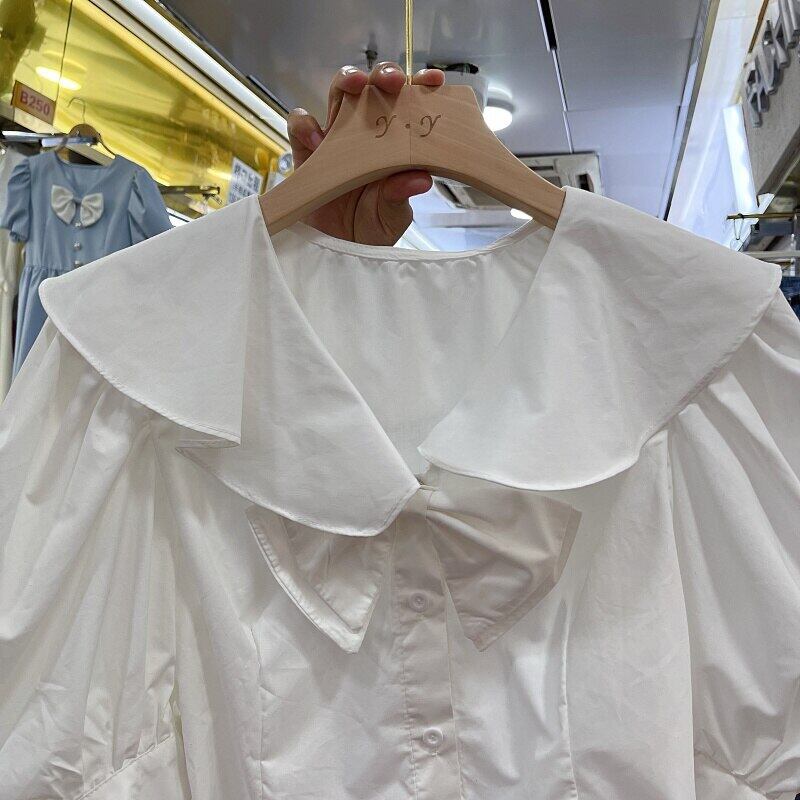 ノミクマ2022サマースウィートボウノットブラウスシックパフスリーブピーターパンカラーシャツカジュアルウエストショート リボン 大人ガーリー キュート 夏物 kor81250953378