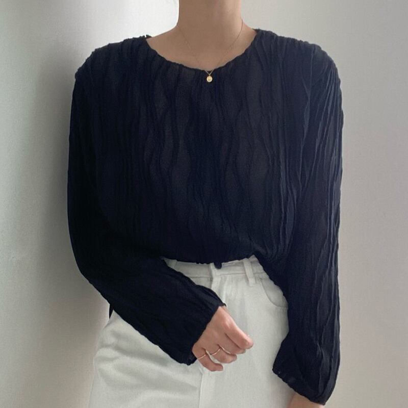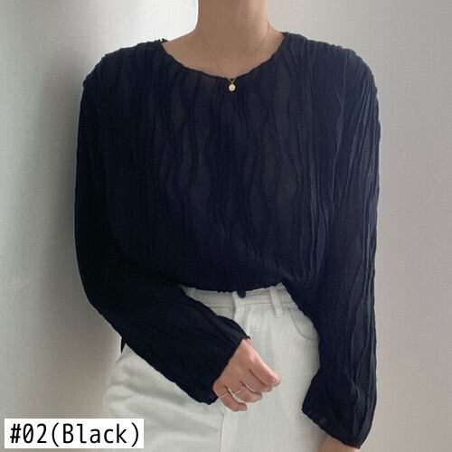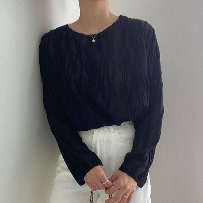 ノミクマシックオータムOネック3Dフォールドブラウスシャツカジュアル長袖2022ウーマンシャツプルオーバートップスフェミニマ ロング 秋物 kor21375980737