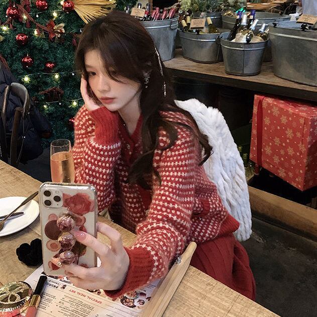 のみくまスウィートニットカーディガンコートファヒオン2022秋冬スウィートコントラストカラーセーター因果長袖Oネックジャケット ロング 大人ガーリー キュート カジュアル オータム 秋物 ウィンター 冬物 kor76452235918
