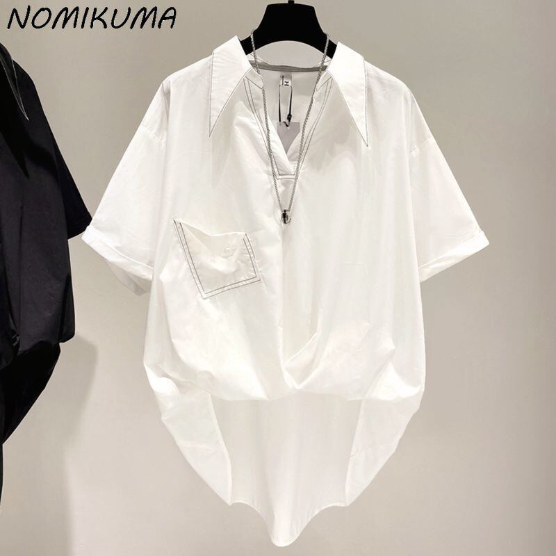Nomikuma DeModa2022夏の因果半袖女性ブラウストップスLseeveターンダウンカラートップシャツ ショート ハーフスリーブ サマー 夏物 kor82093133304