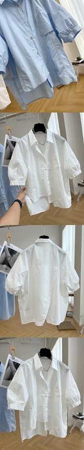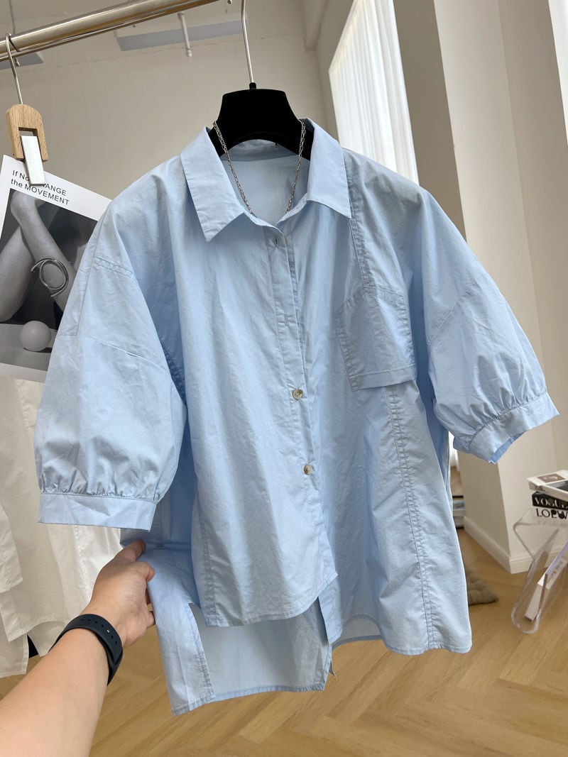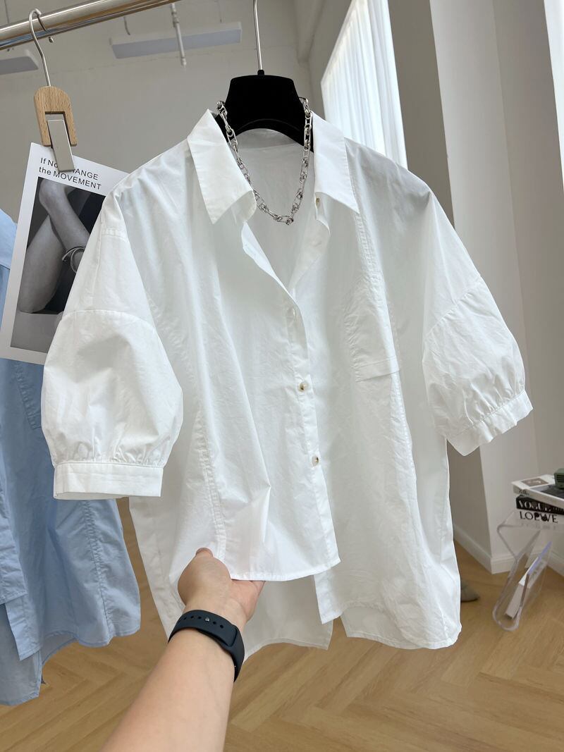 のみくま2022夏の女性シャツ因果不規則なバックスプリットブラウスパフスリーブターンダウンカラー サマー 夏物 kor10653373338