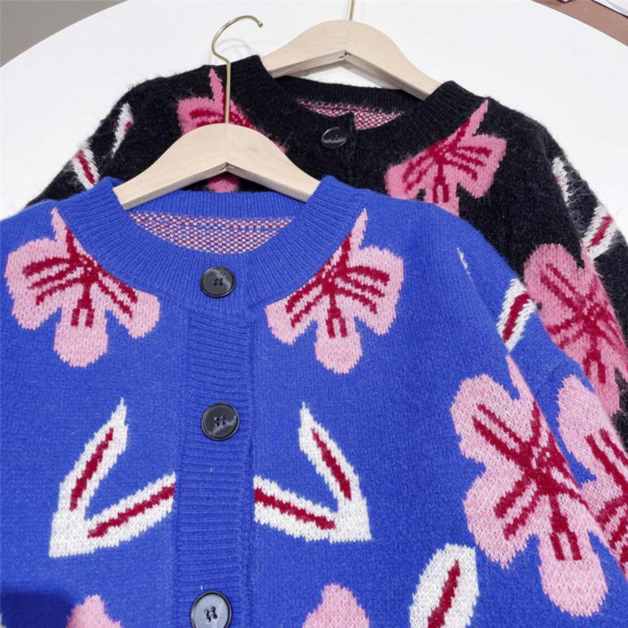 ノミクマモヘアフラワーセーターカーディガンレディースニット2022秋冬コート因果長袖Oネックプルトップス ロング オータム 秋物 ウィンター 冬物 フラワーデザイン kor80675099556