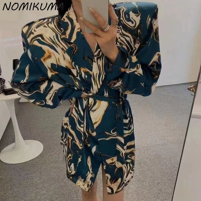 のみくま絞り染めノッチカラーレースアップスリムウエストブラウスレディース2022秋長袖シャツ ロング オータム 秋物 kor30164416803