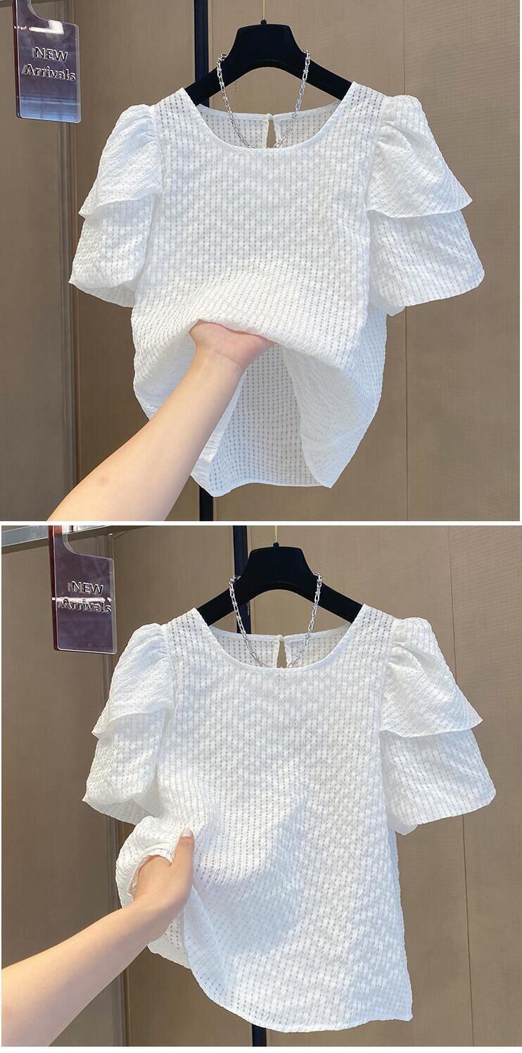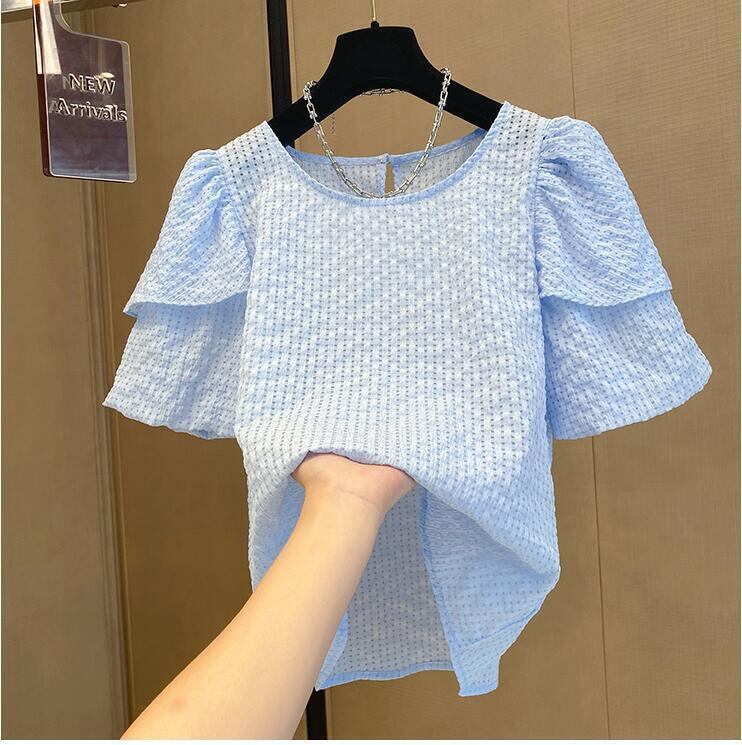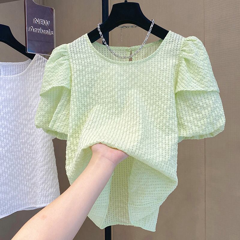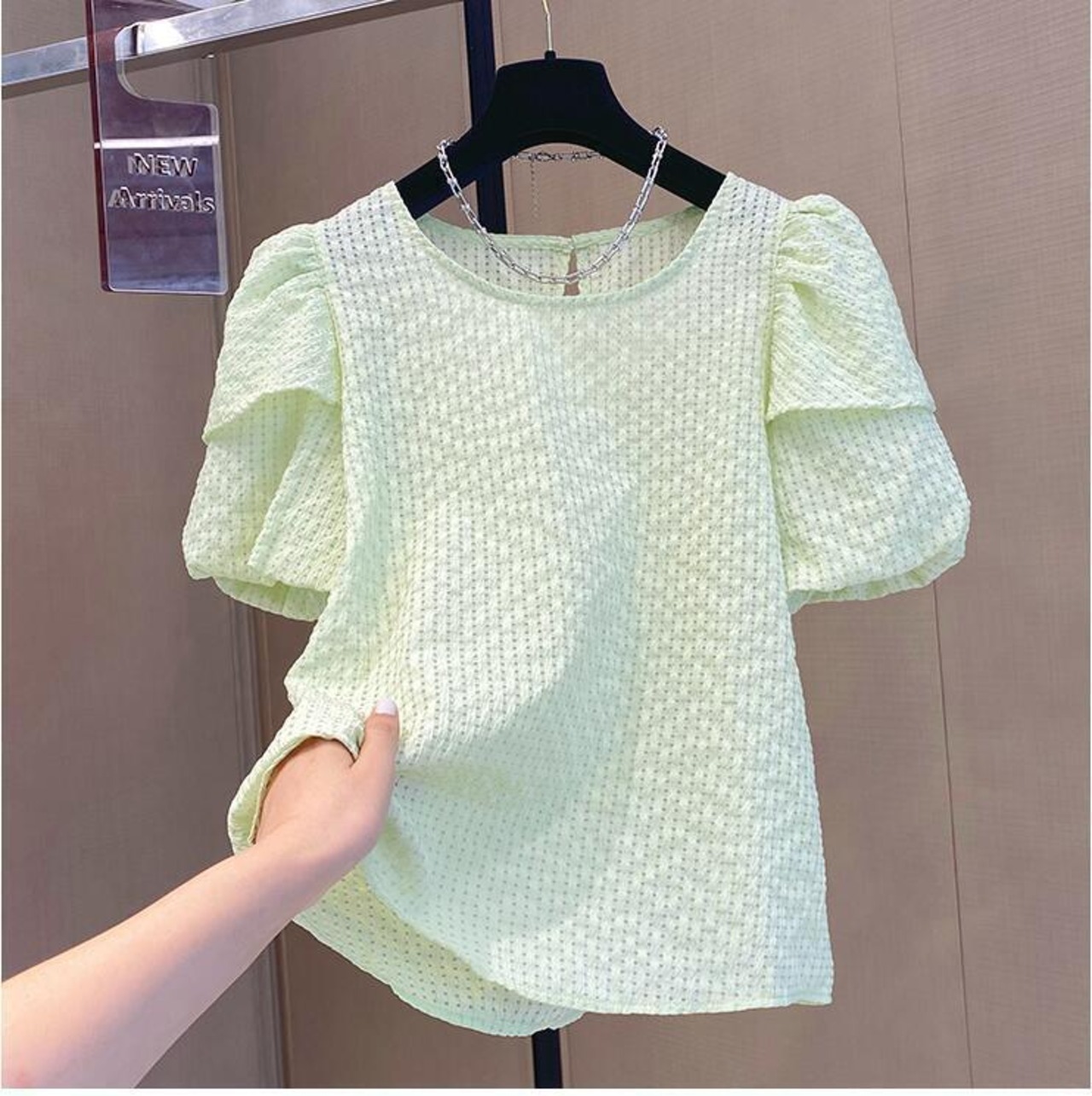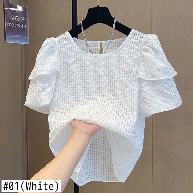 のみくまシックスウィートパフスリーブウーマンドールシャツカジュアルOネックプルオーバーブラウストップス 大人ガーリー キュート サマー 夏物 kor85404821309