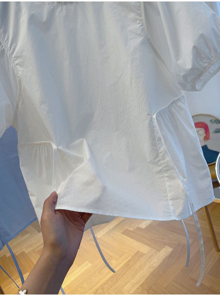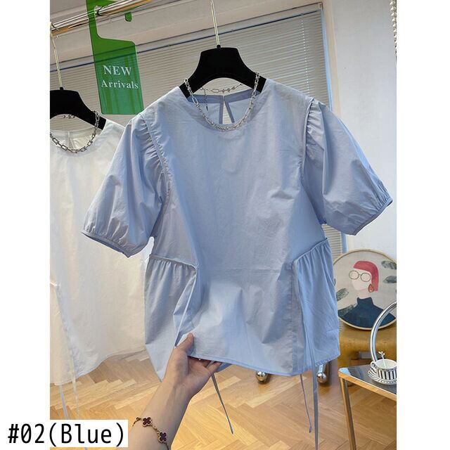 のみくまレディースドールシャツカジュアルパフスリーブOネックシックソリッドブラウス2022サマースウィートリボントップフェミニモス 大人ガーリー キュート 夏物 ソリッドカラー kor34640568823