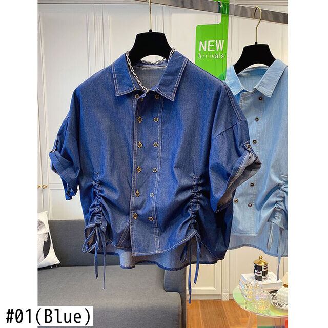 のみくま因果ダブルブレストデミンシャツドローストリングレディースブラウス2022夏半袖ジャーメイン・ジェナス ショート ハーフスリーブ サマー 夏物 kor41720501390