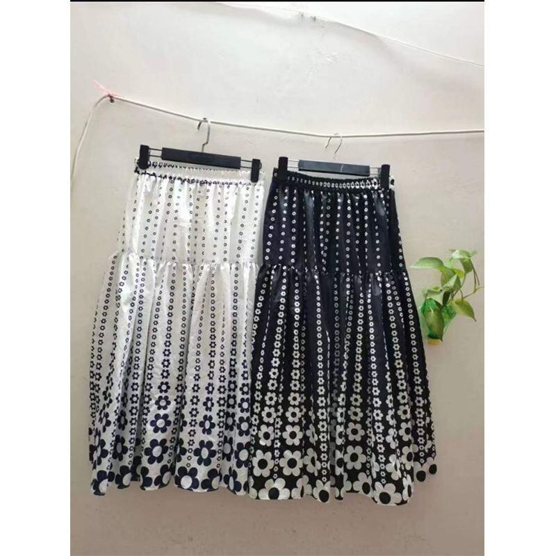 のみくまフローラルプリントパッチワークAラインスカートレディース2022エラスティックウエストカジュアルミディ丈スカートファルダス 伸縮 花柄 kor92436287554