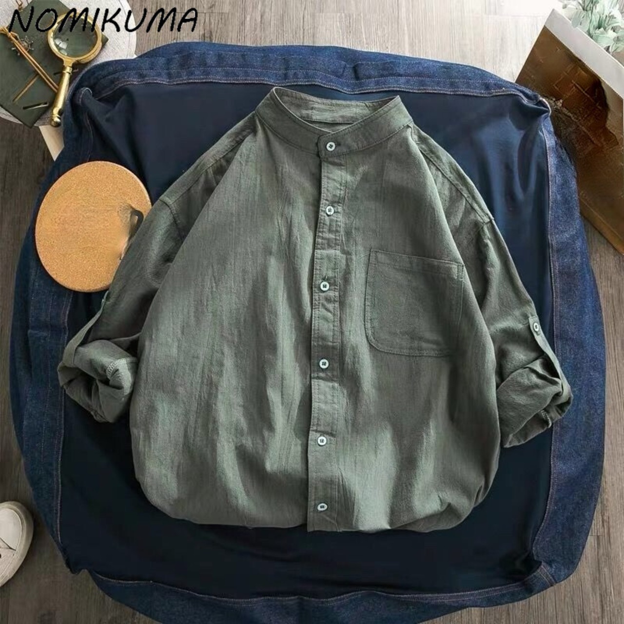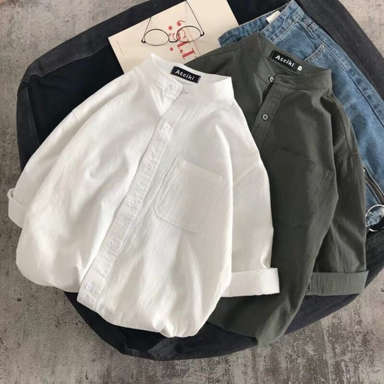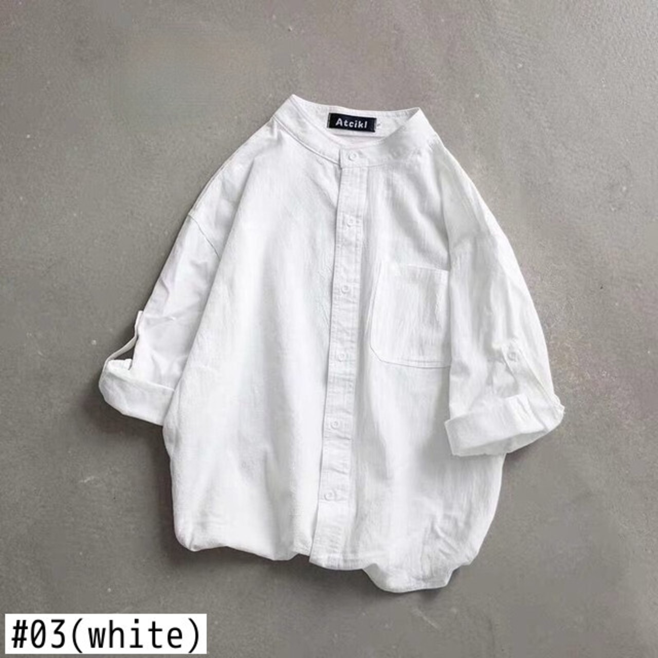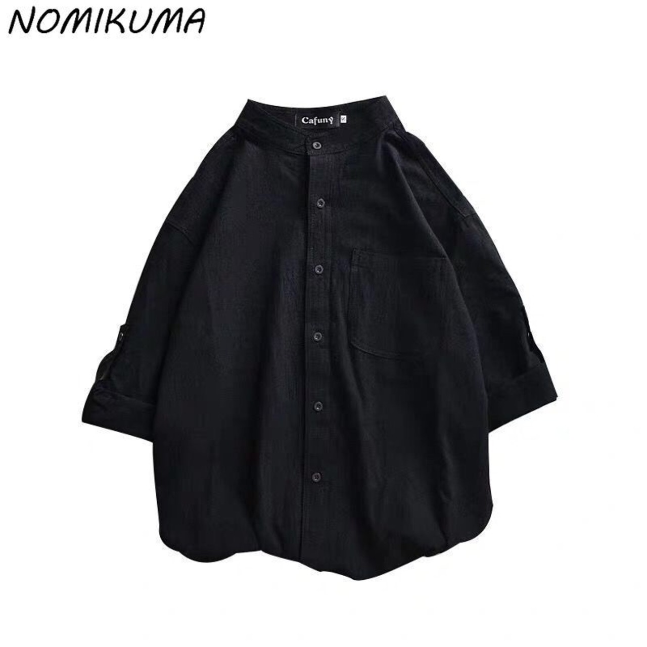 因果スタンドネックウーマンシャツスリークォータースリーブソリッドブラウス2022SummerDe Moda 6J839 サマー 夏物 ソリッドカラー kor82953820128