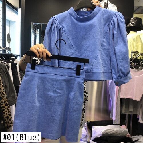 のみくま2022レディースツーピースセットシックなパフスリーブOネックショートトップス+ウエストAラインミニスカートスカート衣装 kor8974192163