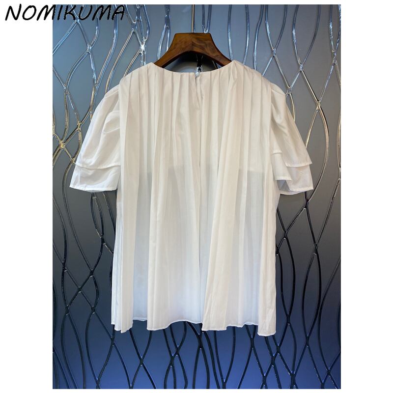 ノミクマフォールドOネックサマーバタフライスリーブブラウスソリッドスウィートウーマンシャツ 大人ガーリー キュート カジュアル 夏物 ソリッドカラー kor90558139146