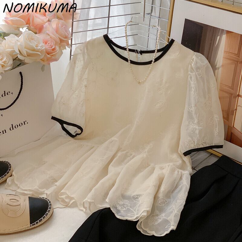 Nomikuma CausalSweetWomenブラウスシックな刺繡パフスリーブOネックドールシャツ2022SummerDe Moda 刺繍 大人ガーリー スウィート キュート カジュアル サマー 夏物 kor39877816693