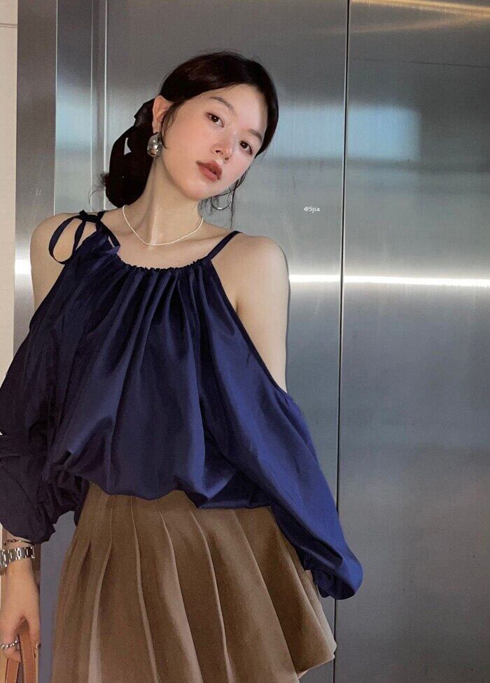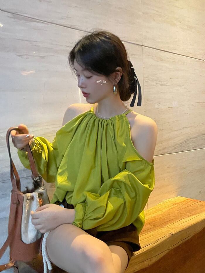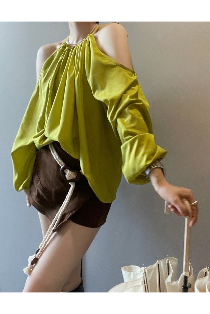 のみくまホルターレースアップストラップレスブラウス女性折り長袖プルオーバートップス ロング ソリッドカラー kor80834597247