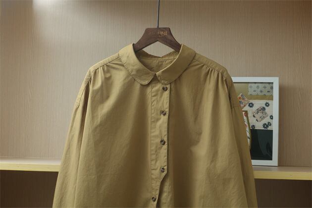 ノミクマスタイルスウィートピーターパンカラーブラウスシャツ因果ダブルブレスト長袖2022オータムトップス ロング 大人ガーリー キュート カジュアル 秋物 kor62336610321