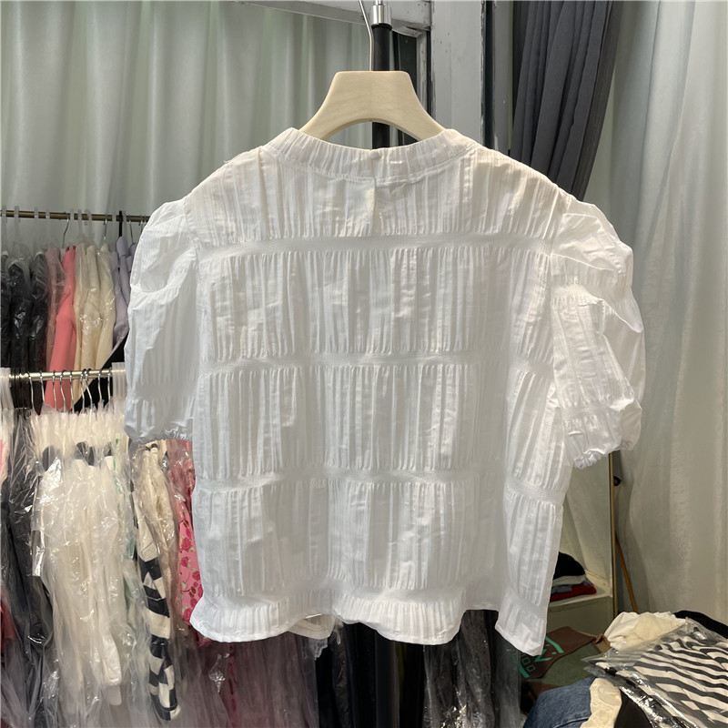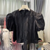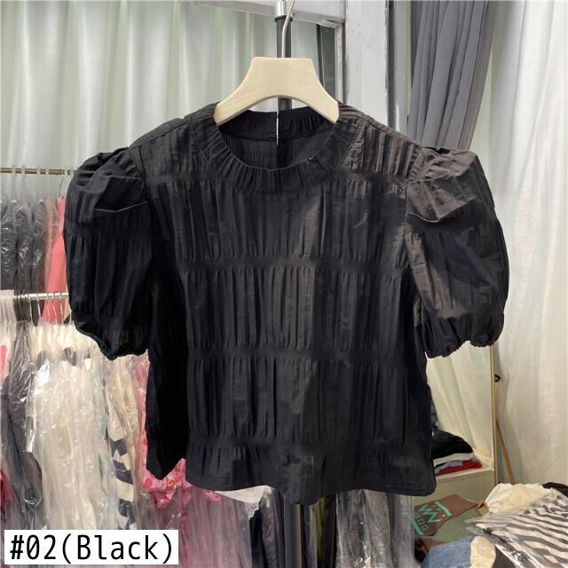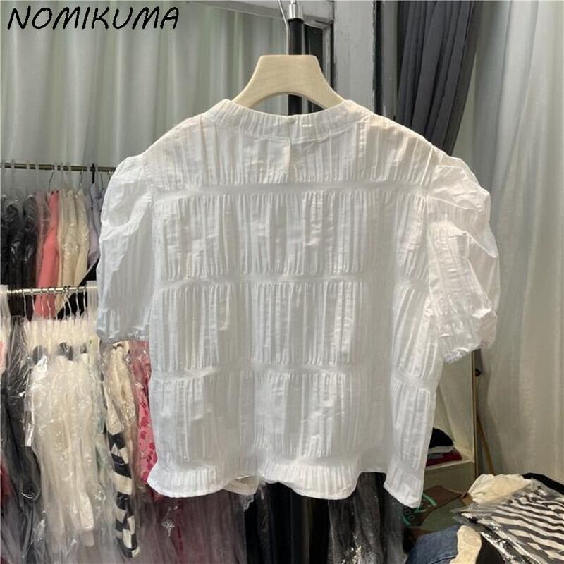Nomikuma 2022SumemrWomenブラウスフォールドパフスリーブOネックトップシャツCausalSolidSweet Chic De Moda 大人ガーリー スウィート キュート カジュアル ソリッドカラー kor61646450870