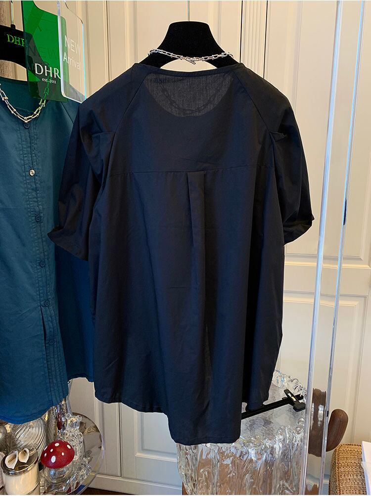 のみくま因果シングルブレストスプリットブラウスレディースシックパフスリーブOネックドールシャツ2022SummerDe Moda サマー 夏物 kor49806777270