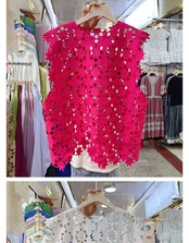 のみくま不規則な中空ベスト女性2022年夏因果レーストップスノースリーブOネックプルオーバーベスト サマー 夏物 kor71812801539