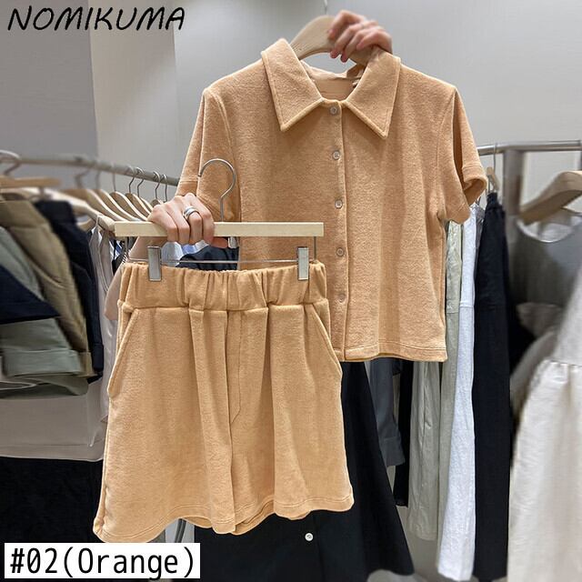 サマーターンダウンカラー半袖Tシャツ+伸縮性ウエストカジュアルショーツツーピースレディースセット ショート ハーフスリーブ エラスティック 夏物 ブルマー kor22570923313