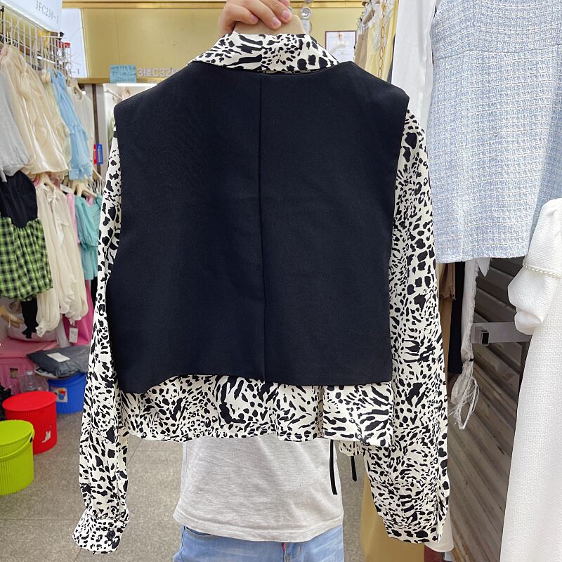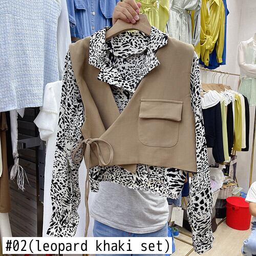のみくまレディースツーピースブラウストップスセットヒョウノッチカラーシフォンシャツ+レースアップウェイトストコート2022秋 オータム 秋物 kor60026899270