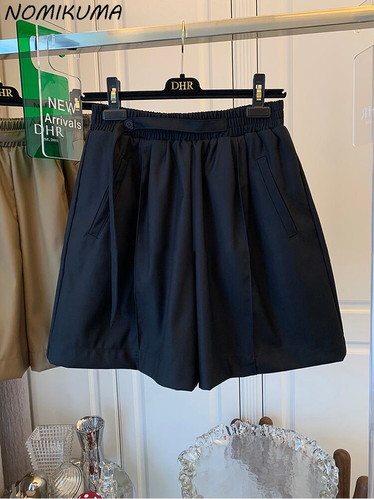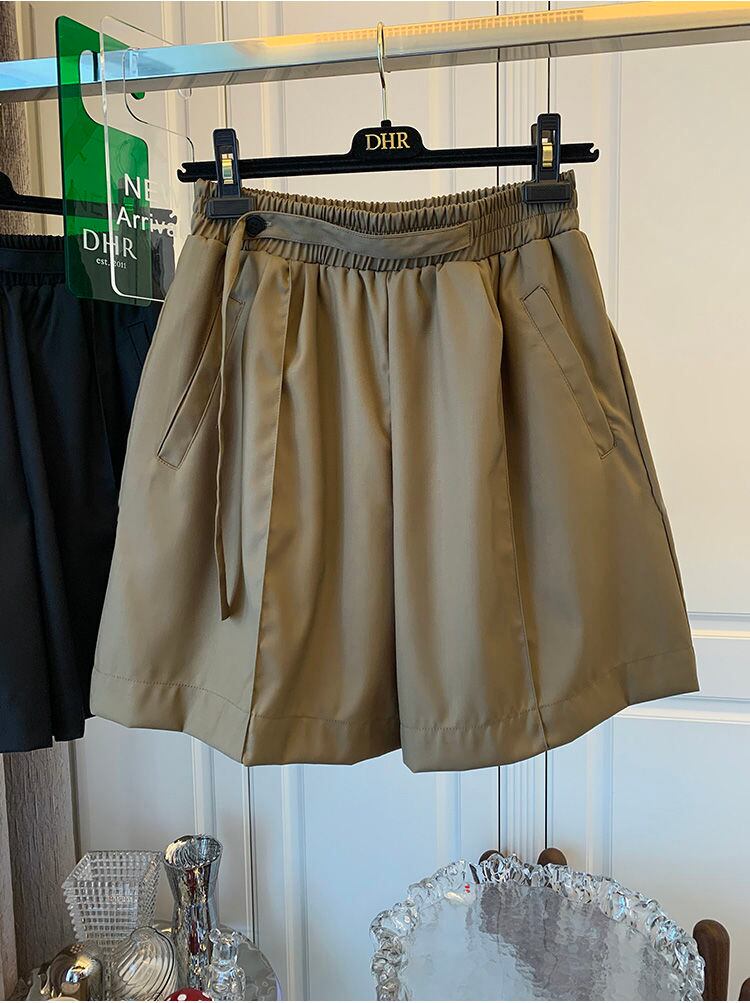 サマーショーツレディースベルト伸縮性ウエストボトムススタイルワイドレッグショートフェミニモス エラスティック 夏物 ハーネス ブルマー ワイドパンツ kor32106623651