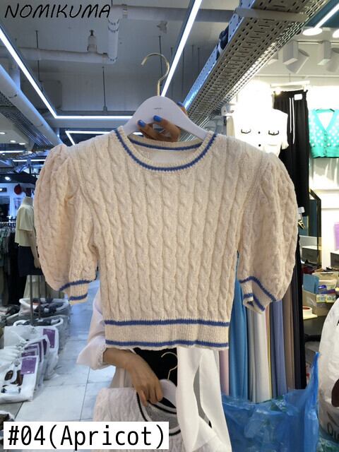 のみくまクロップドニットプルオーバーツイストパフスリーブOネックニット2022SummerSweet Woman Sweaters 大人ガーリー スウィート キュート カジュアル サマー 夏物 kor94767026537