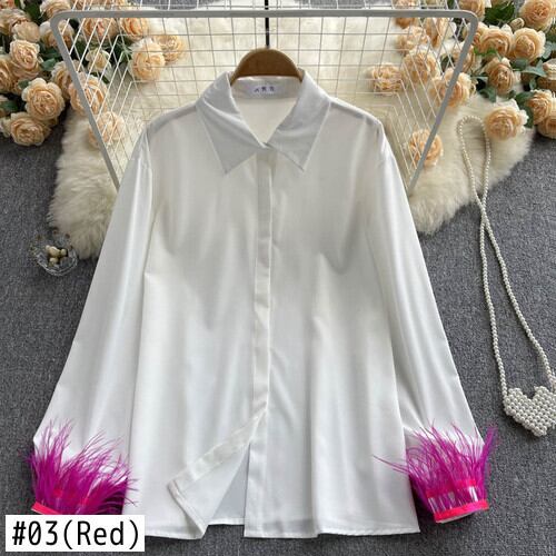 のみくまヒットカラーフェザーパッチワーク長袖ブラウスシャツレディーストップ2022オータムデ ロング 秋物 kor78359042324