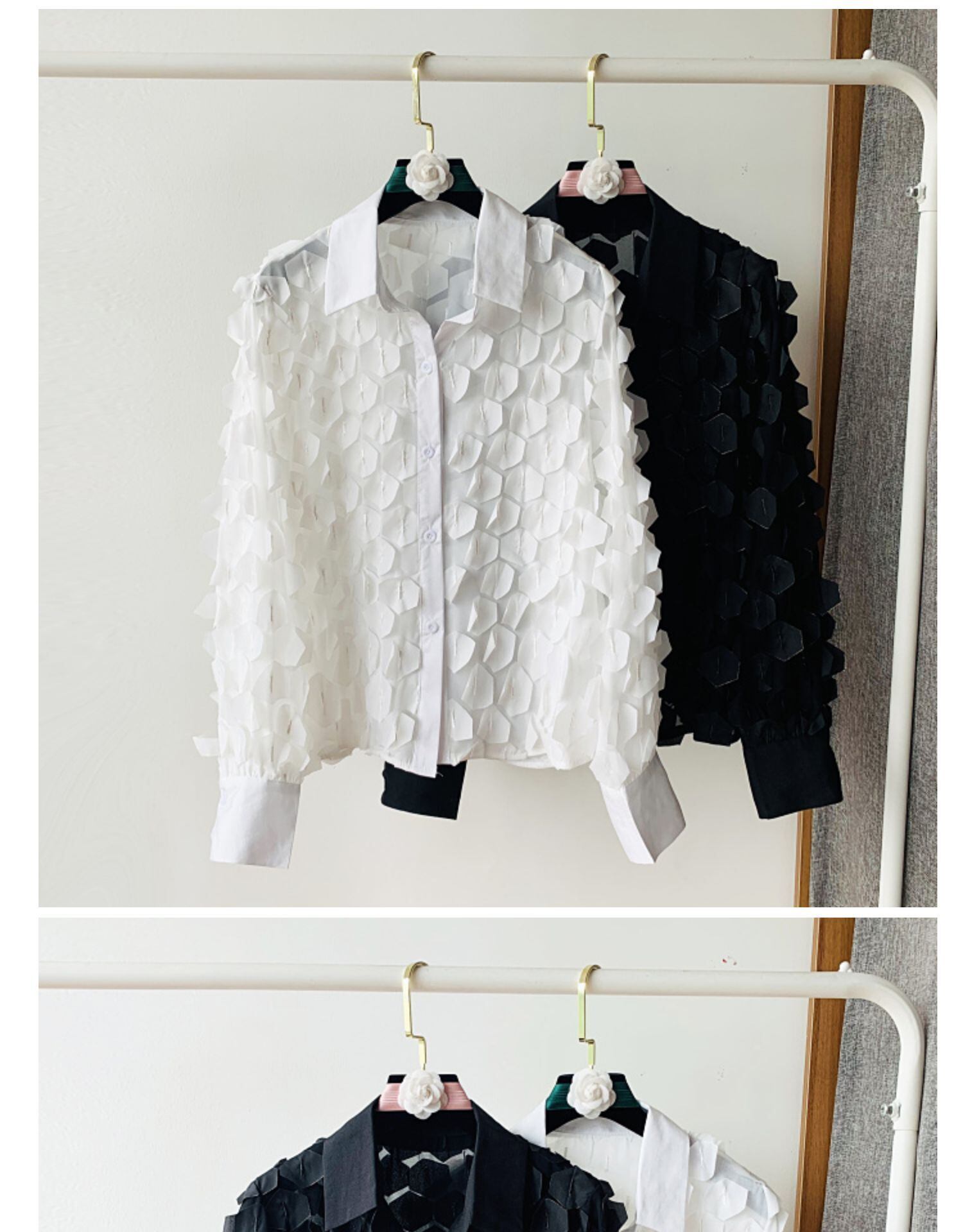 のみくま2022秋因果ブラウストップシック花びらパッチワークシフォンランタンスリーブシャツDe オータム 秋物 kor74102212052