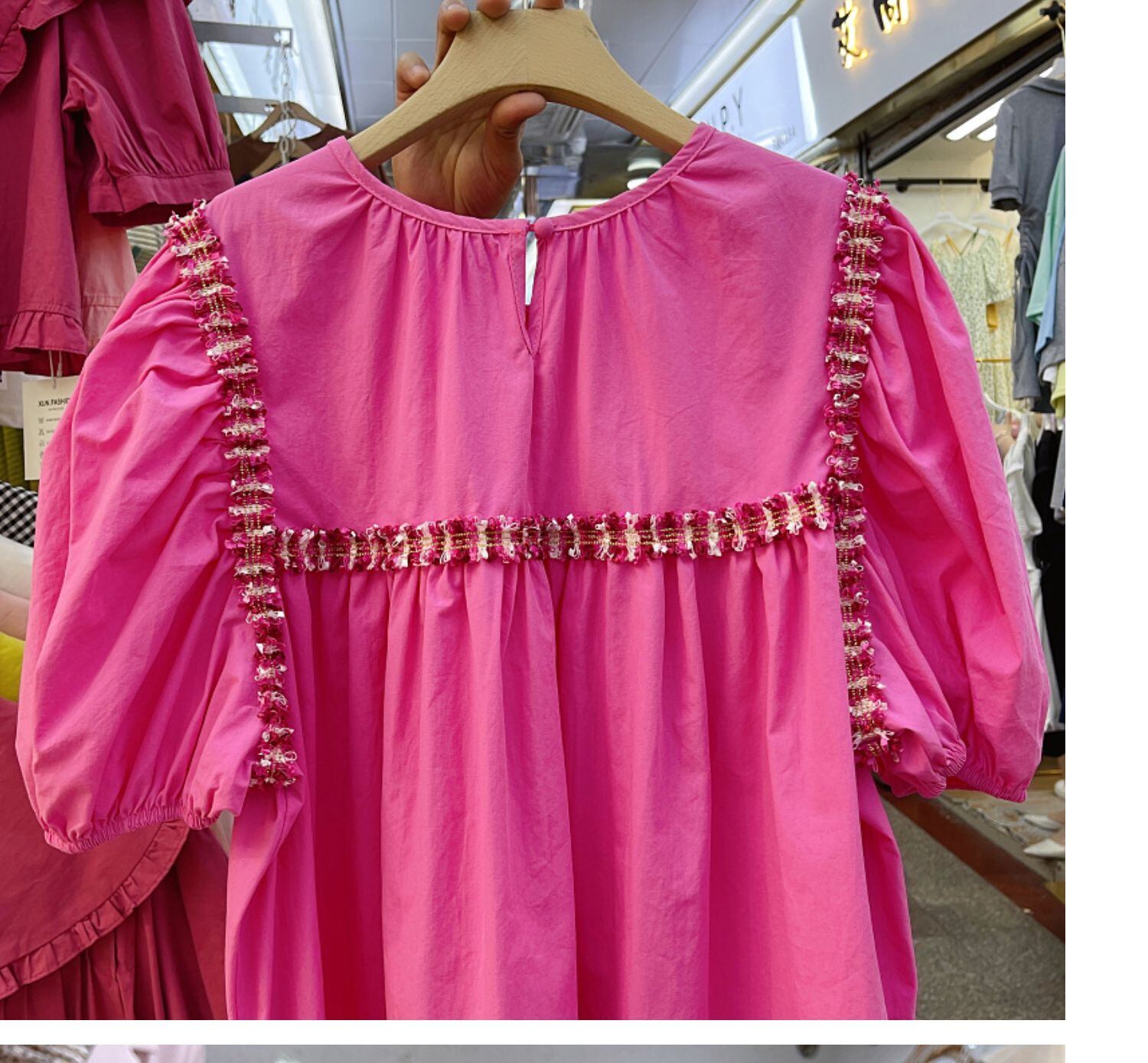 のみくまミディアムロングスプリットブラウストップス因果パッチワークパフスリーブOネックウーマンシャツ2022夏フェミニマ サマー 夏物 kor91420896892