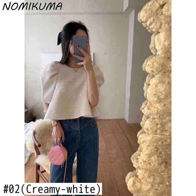 のみくまレディーストップスシックスウィートパフスリーブドールシャツCausalSolidBlouses夏2022De ブラウス 大人ガーリー キュート カジュアル サマー 夏物 ソリッドカラー kor97883197433