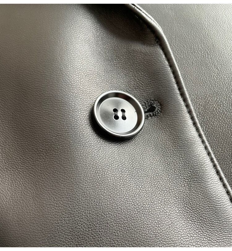 のみくまPUレザーレディースブレザーコート因果長袖ターンダウンカラーブレザーデモダ2022オータムスーツジャケット ロング 秋物 kor74213131803