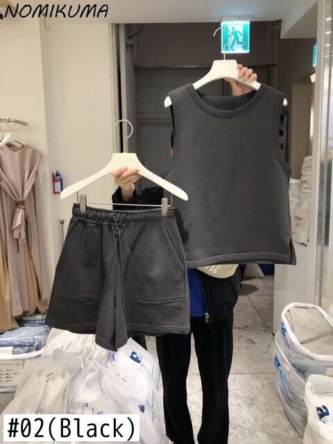 のみくまレディースツーピースセット2022夏の因果ノースリーブOネックベストトップスレースアップウエストワイドレッグショーツ サマー 夏物 ブルマー ワイドパンツ kor17256610677