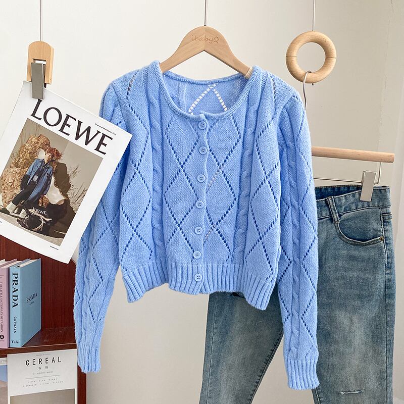 のみくまOネックシングルビーストアーガイルツイスト長袖半袖セーターカーディガンコートトップス女性2022年 ショート ロング kor72244148739