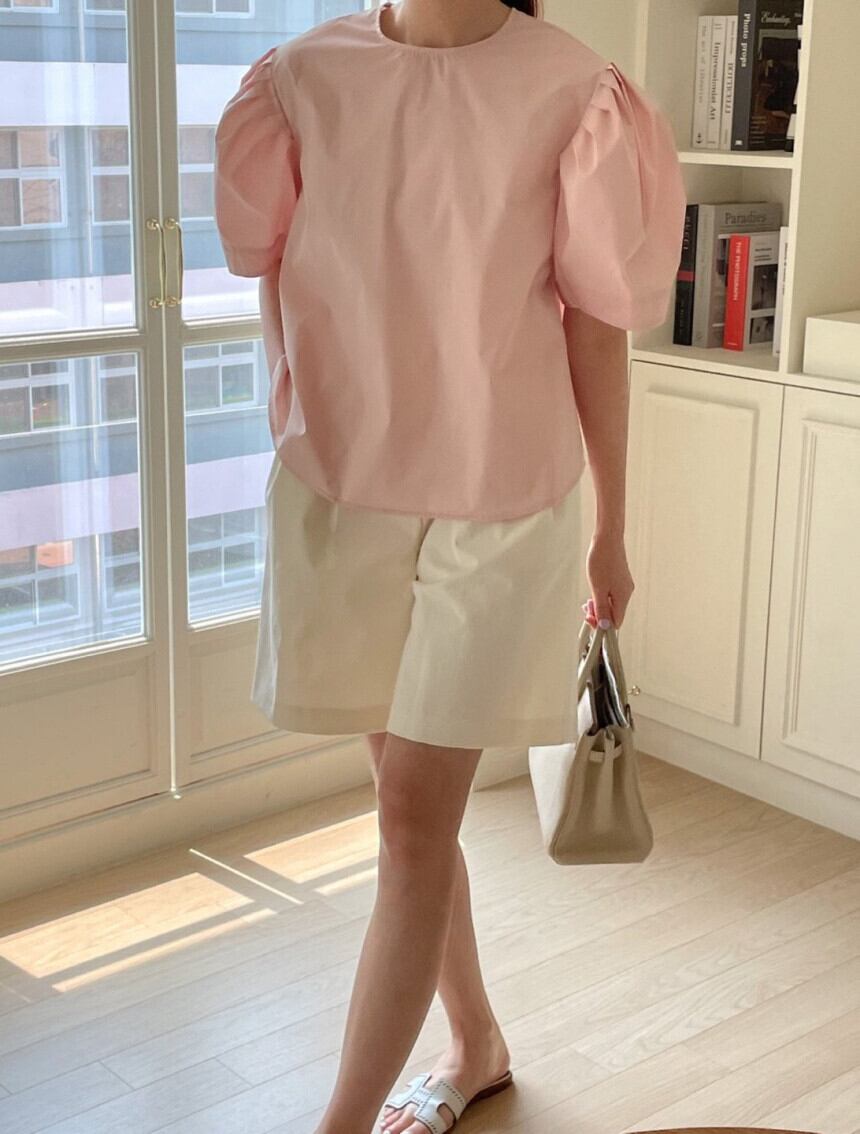 のみくまシックサマーウーマンドールシャツCausalSolidSweet Blouse Tops 2022 De Moda ブラウス 大人ガーリー スウィート キュート カジュアル 夏物 ソリッドカラー kor97852840218