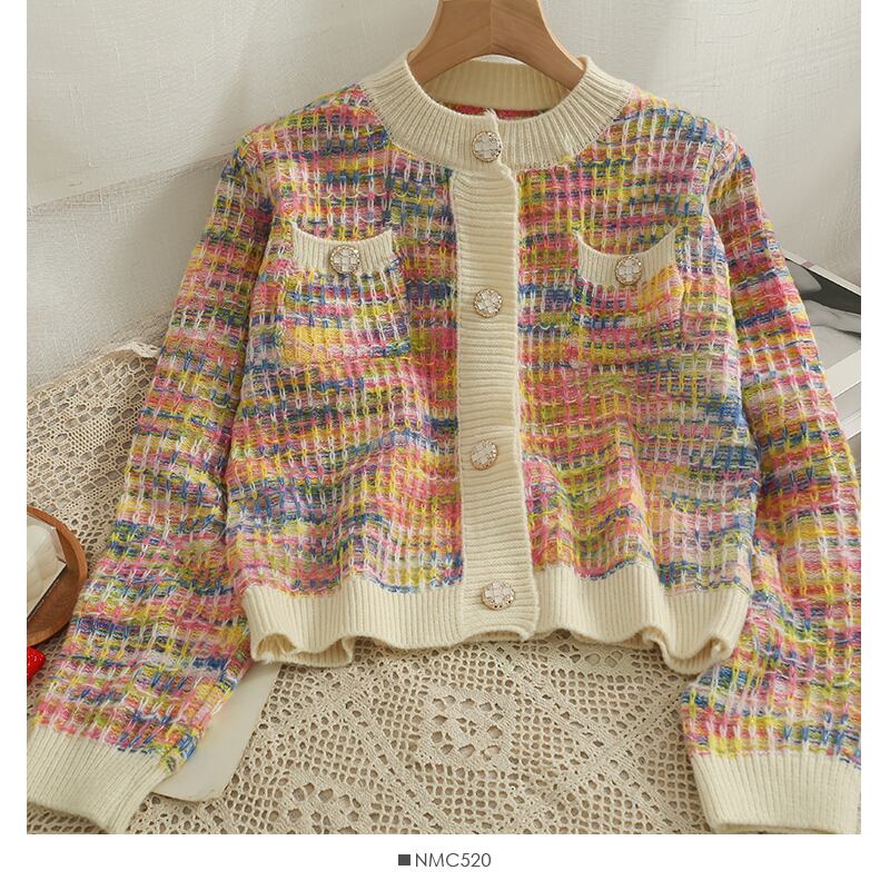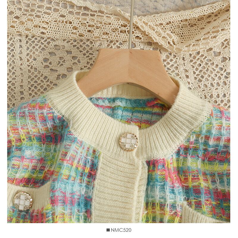 のみくまスウィートコントラストカラーショートシングルブレストニットカーディガンセーターレディース2022秋因果長袖ニットコート ロング 大人ガーリー キュート カジュアル オータム 秋物 kor91047984428
