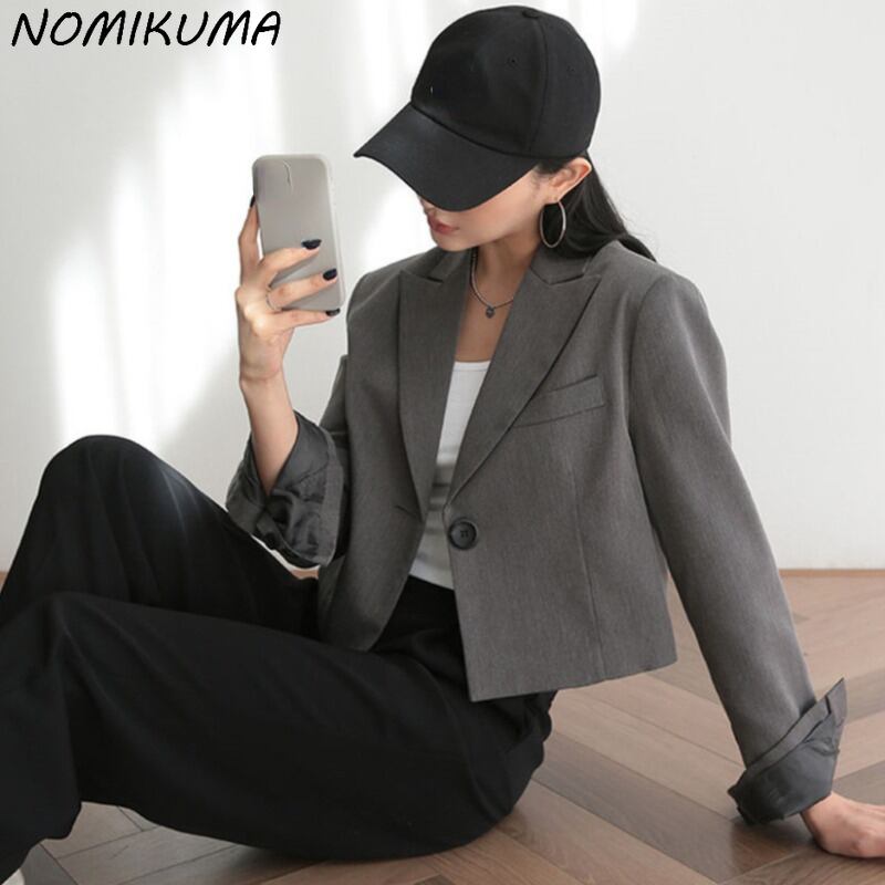 のみくまショートブレザーレディース秋長袖ノッチカラースーツジャケット因果シングルボタン2022ブレザーコート ロング オータム 秋物 kor32151999375