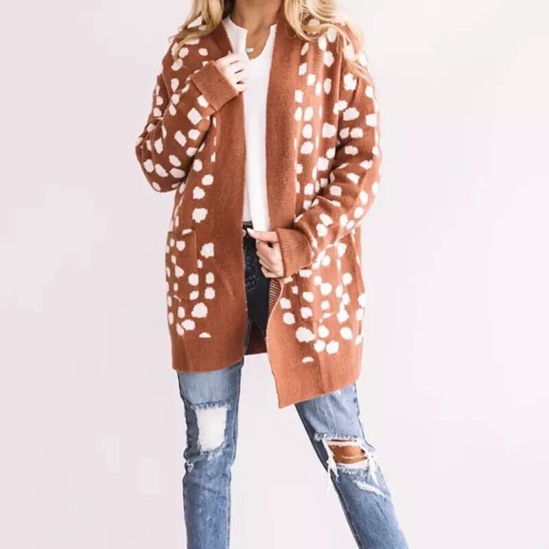 Nomikuma 女性秋冬イレギュラードットセーターコート 2022 長袖 V ネックカーディガンロングニットオープンステッチ オータム 秋物 ウィンター 冬物 Vネック kor89972629549