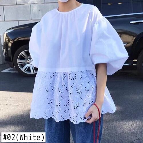 Nomikuma シックなパフスリーブ O ネックドールシャツ De Moda 2022 夏中空アウトフリル甘いブラウストップ Feminimos 大人ガーリー スウィート キュート カジュアル サマー 夏物 Oネック kor12859610546