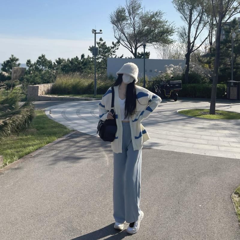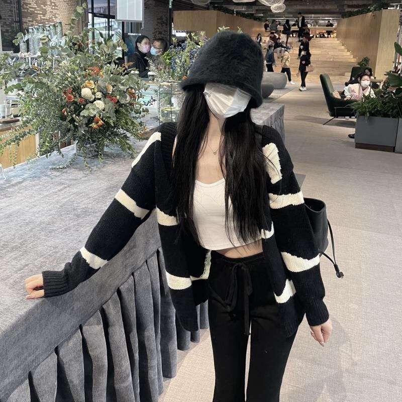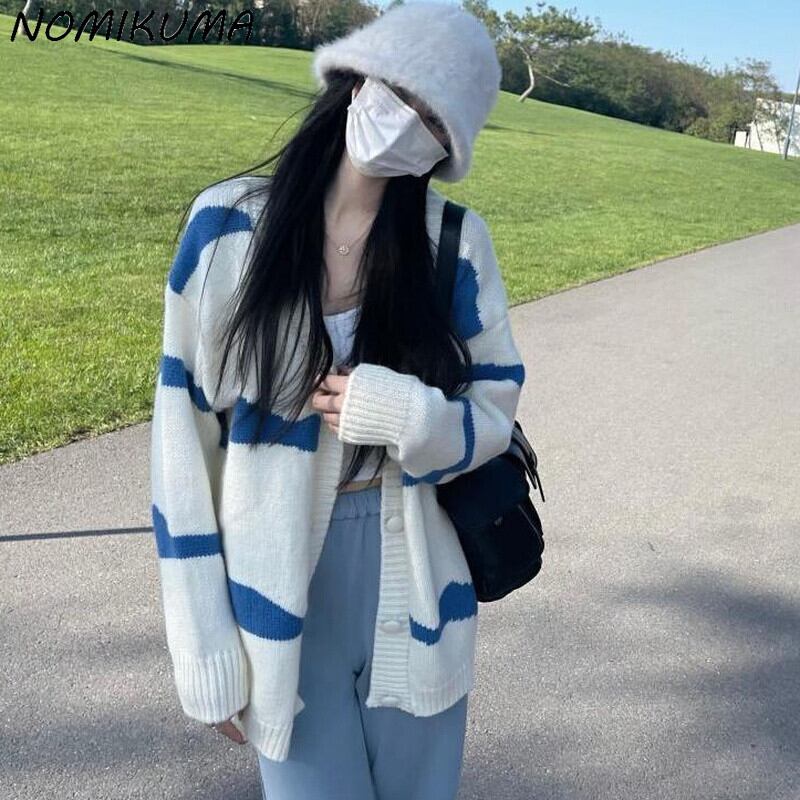 Nomikuma イレギュラーストライプ ニット カーディガン カジュアル レディース 2022 秋冬 セーター 長袖 Vネック ニット ロング オータム 秋物 ウィンター 冬物 kor46124413364