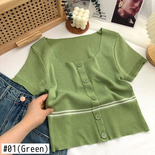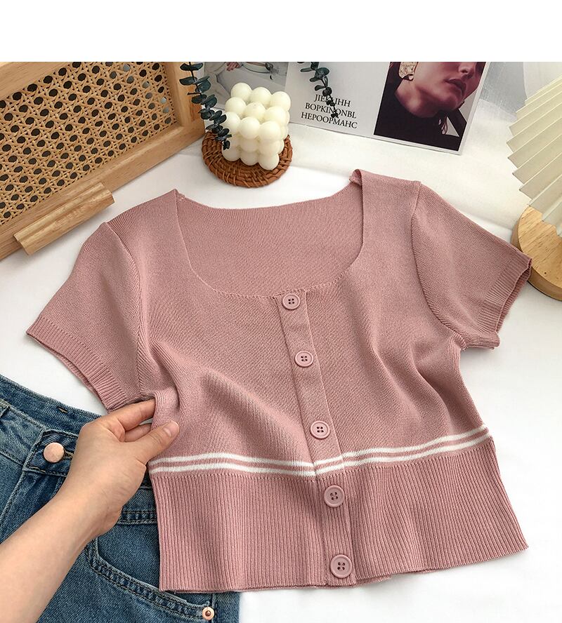Nomikuma スクエアカラー シングルブレスト 半袖 ニットウェア レディース 2022 スリム クロップド ニット トップス セーター ショート ハーフスリーブ スクウェア kor67014661219