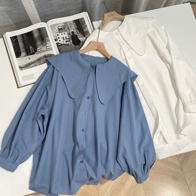 Nomikuma因果ピーターパン襟女性シャツ長袖無地ブラウストップス 2022 春ルーズスタイル Feminima ロング スプリング 春物 ソリッドカラー kor97069609396