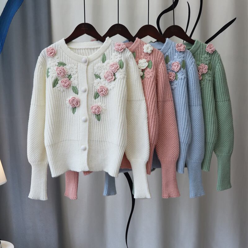 Nomikuma 花ニットカーディガン女性 2022 秋冬ニット因果長袖 O ネックセーターコートプル ロング オータム 秋物 ウィンター 冬物 Oネック フラワーデザイン kor94027989446