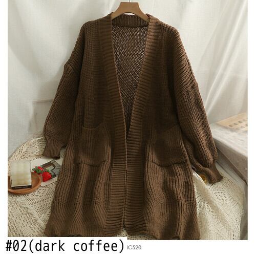 のみくまロングカーディガン女性2022年秋薄ニットコート因果長袖Vネック無地ニットセーターオープンステッチ オータム 秋物 ソリッドカラー kor83231494177