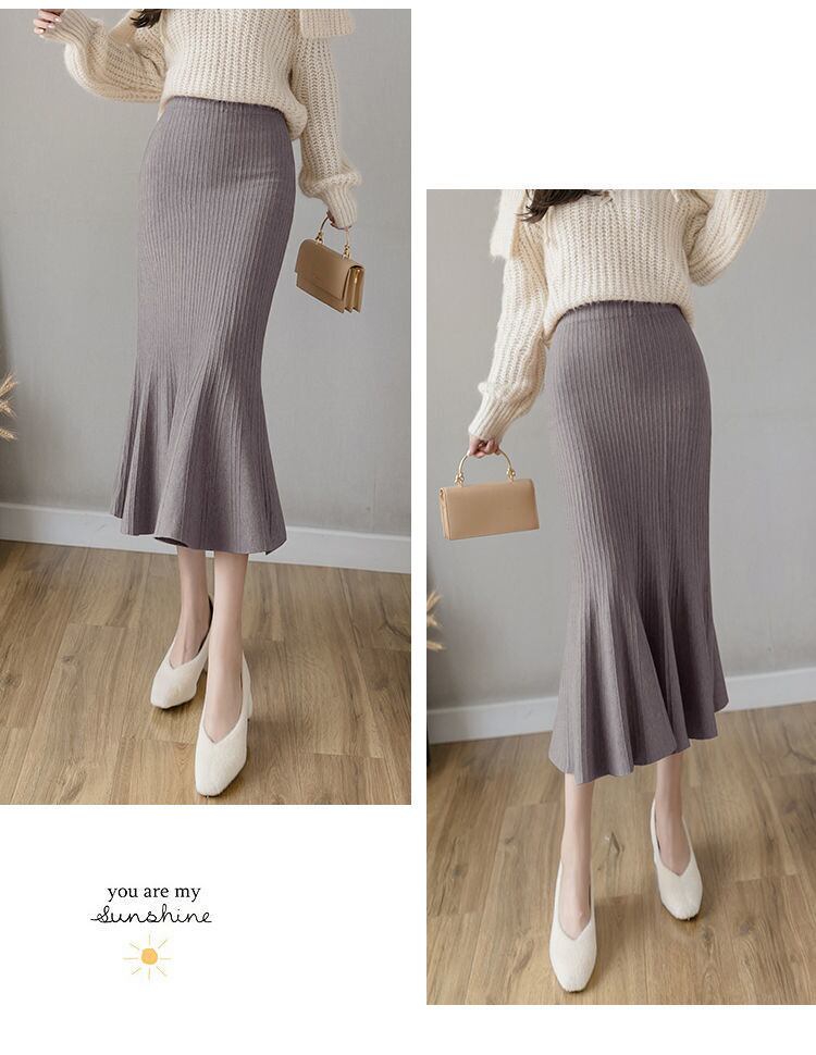 のみくまウエストニットマーメイドスカートレディース2022年秋冬ボトムソリッドセータートランペットスカート オータム 秋物 ウィンター 冬物 ソリッドカラー kor26922441296