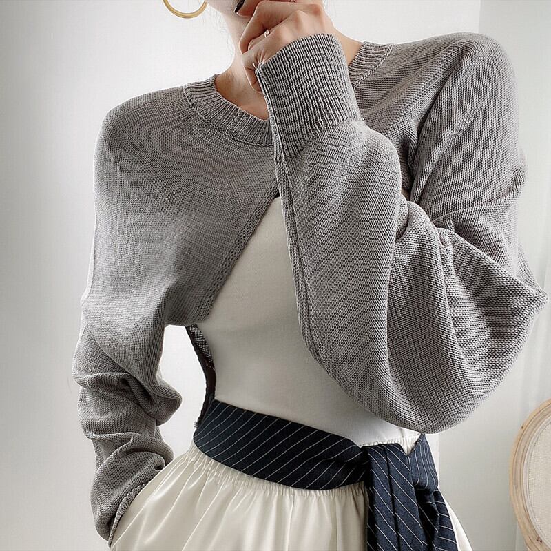 のみくまシックイレギュラーエクストリームショートプルオーバーニット因果長袖Oネック女性セーター2022秋ニットトップス ロング オータム 秋物 kor8909162774
