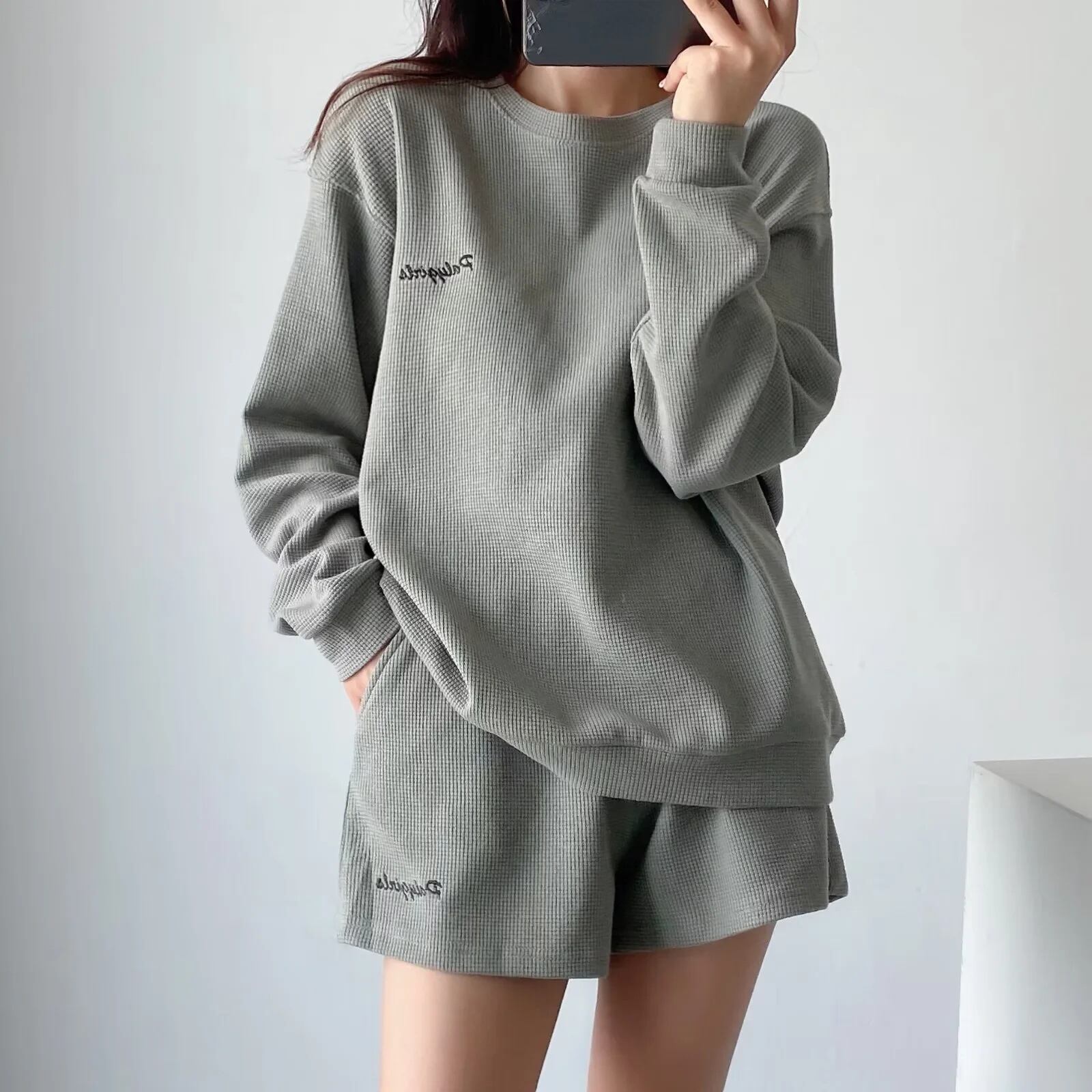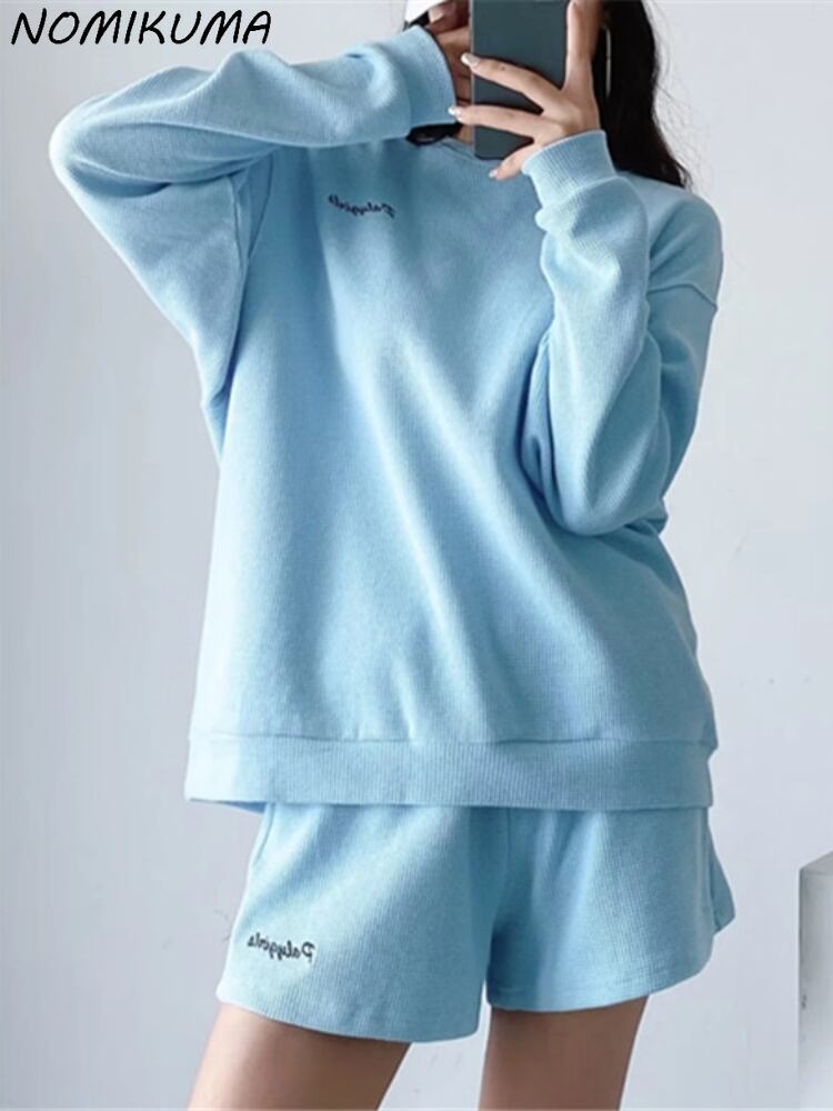 Nomikuma 2022 因果ツーピース女性衣装シックな手紙刺繍プルオーバー長袖トップス + Wiast ショーツ 2 ピース ロング ブルマー kor16672572967