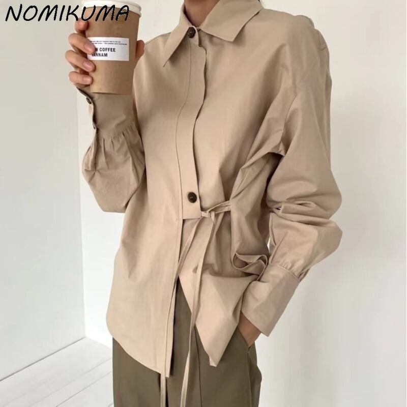 Nomikuma レディース トップス レースアップ 長袖 ブラウス シャツ 2022 秋 De Moda ロング オータム 秋物 kor52568843167