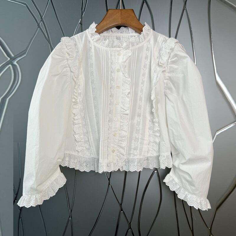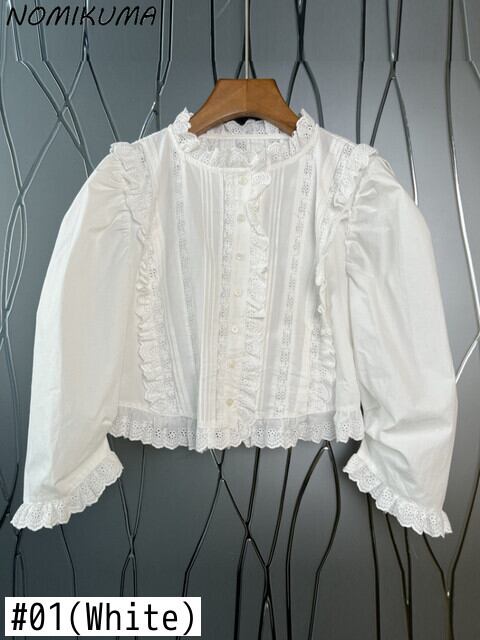 Nomikuma シックな刺繍フリルショートブラウスシャツ女性 2022 秋のシックな甘いショートトップ因果 s 大人ガーリー スウィート キュート カジュアル オータム 秋物 kor31061763947