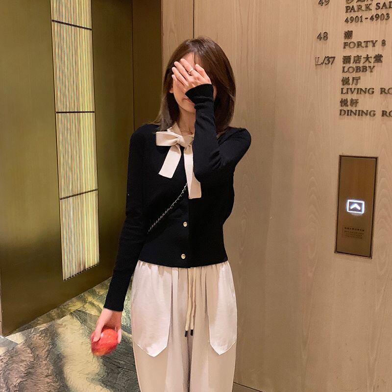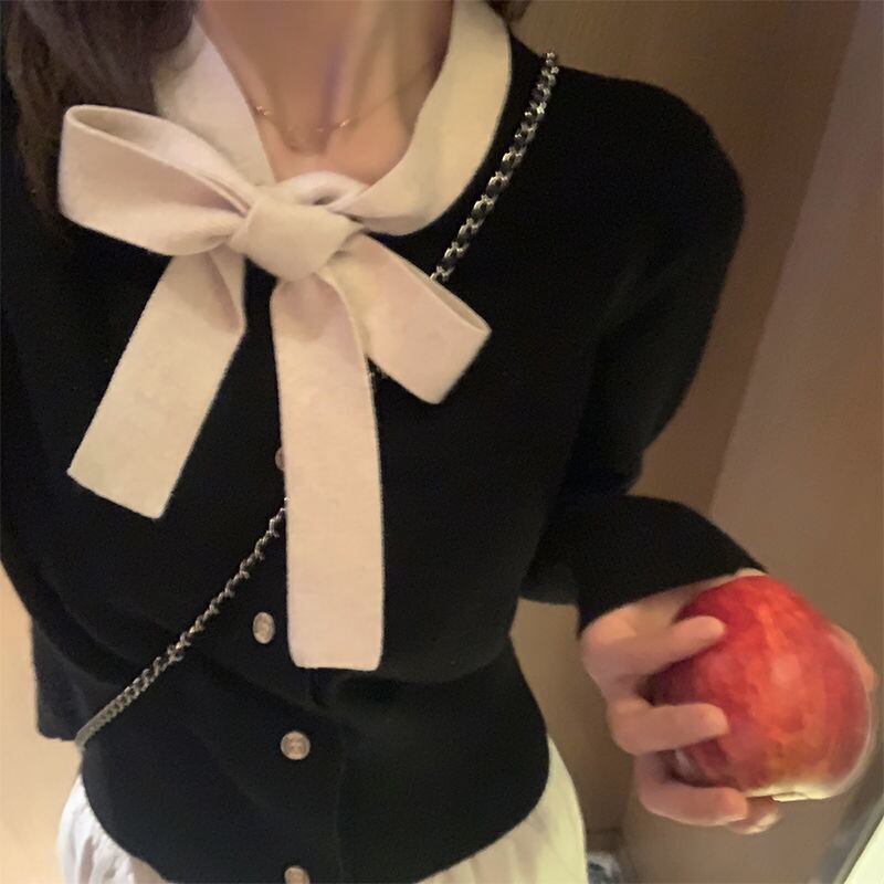 Nomikuma 秋 2022 女性セーターコートヒットカラー蝶ネクタイ O ネック Kintted カーディガン長袖ニット 6E552 ロング リボン オータム 秋物 Oネック kor76001296838